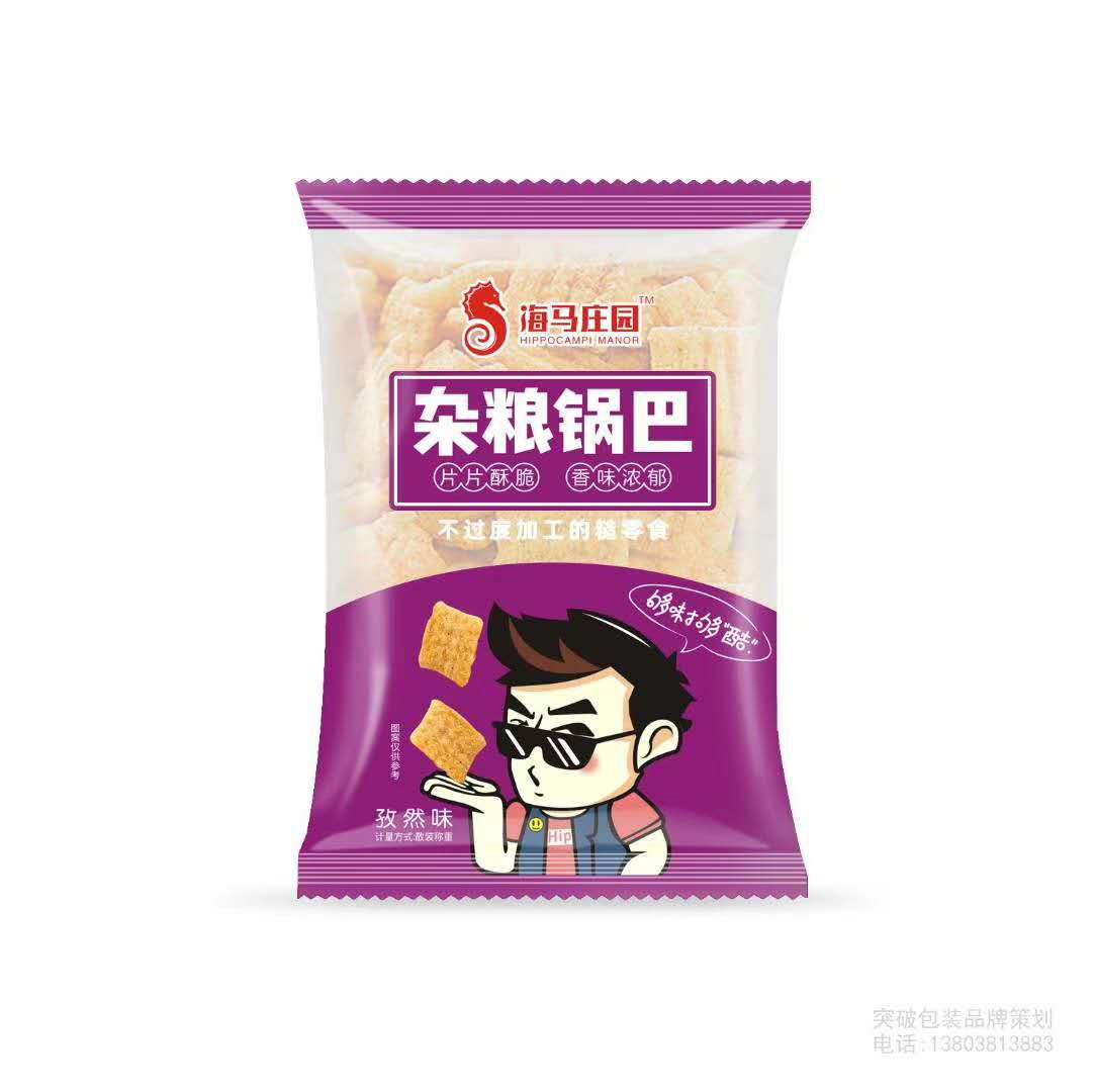 鄭州市金豐源食品有限公司主打產(chǎn)品海馬莊園雜糧鍋巴自然味。