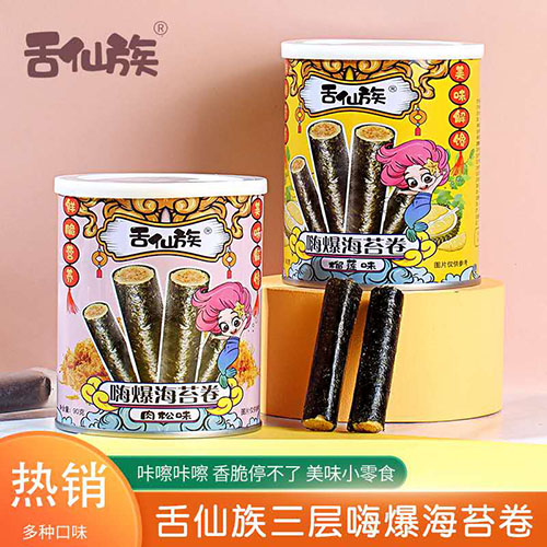 舌仙族嗨爆海苔卷肉松味+榴蓮味