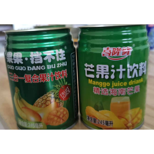 山東樂聽可樂飲料有限公司主打產(chǎn)品喜隆隆芒果汁飲料245ml。