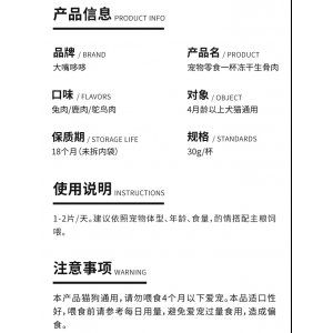 食物鏈大嘴哆哆凍干生骨肉鹿肉貓犬30g