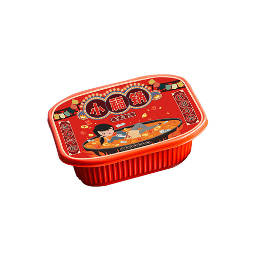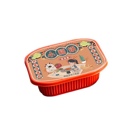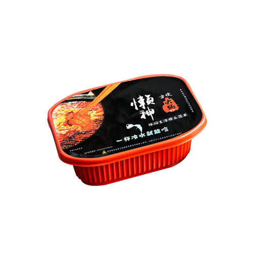 2、撕開川粉包放入上層盒子最底部,再依次撕開菜包等菜品放入上層盒子