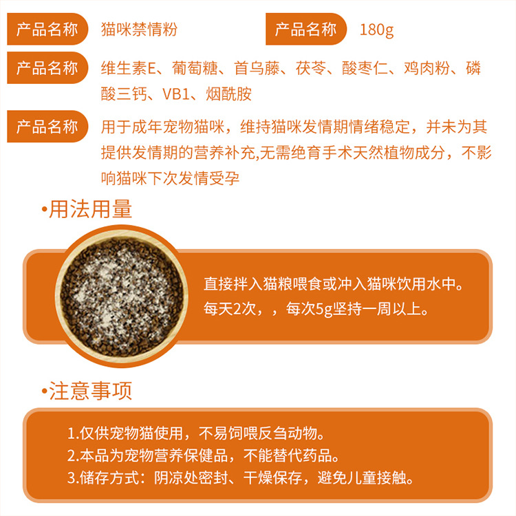 沈丘縣金玉實業(yè)有限公司主打產品壹米動保貓咪抑情片60g*1瓶,貓咪禁情粉180g*1瓶。