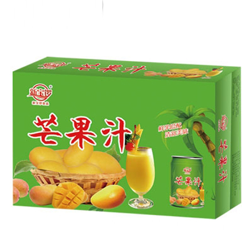山東新寶鑼食品有限公司主打產(chǎn)品新寶鑼芒果汁(箱)。