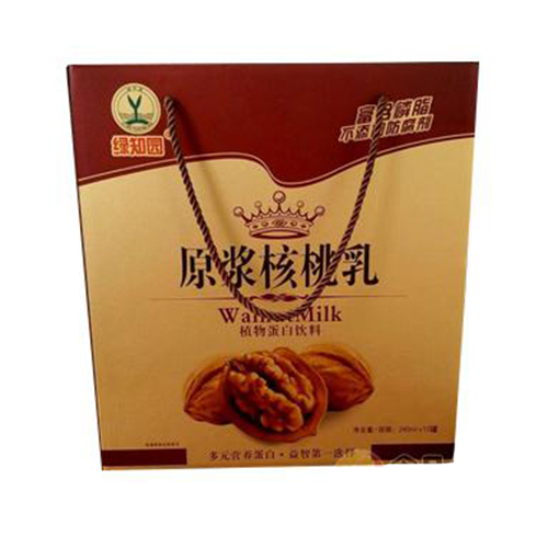 山東沂南綠之源食品公司主打產(chǎn)品綠知園原漿核桃乳。