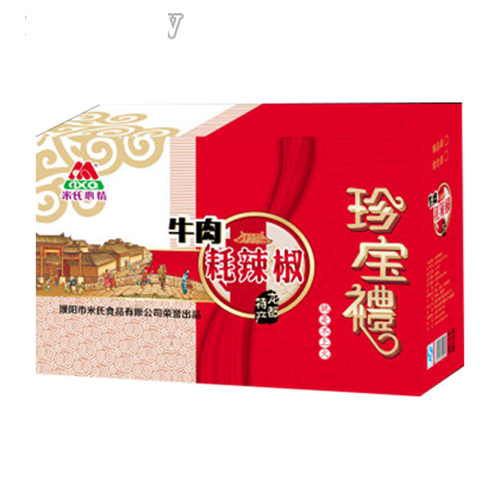 濮陽市米氏食品有限公司主打產(chǎn)品米氏心情牛肉耗辣椒禮盒。