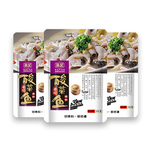 重慶市富足釀造有限公司主打產(chǎn)品富足老壇酸菜魚調(diào)料310g。